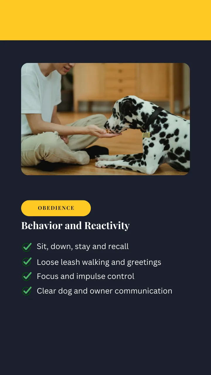 No fear, no punishment. Calm, consistent structure helps dogs feel secure and owners feel confident.